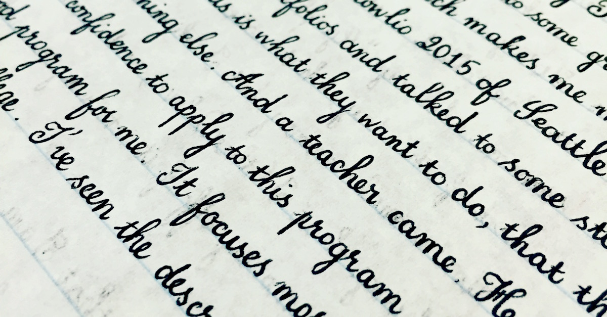 Если вы хотите, чтобы ваш почерк выглядел великолепно, даже если вы не писали на разлинованной бумаге, Bugbee предлагает использовать шаблон. «Вы можете положить лист бумаги из блокнота под бумагу для принтера или канцелярские принадлежности, — объясняет она. — Скорее всего, вы сможете увидеть линии бумаги из блокнота сквозь бумагу, и вы сможете использовать эти линии в качестве направляющих даже для письма». ».