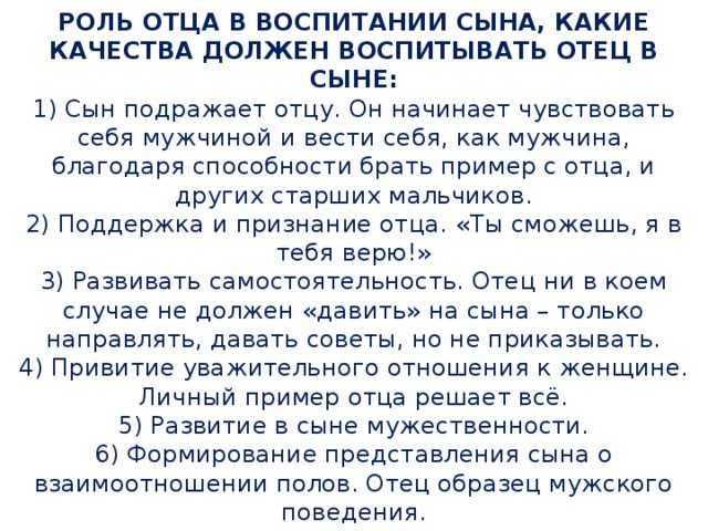 Помните, что угрозы насилия не защищают от него, а вот уверенность в себе и своем праве сказать “нет” — защищает. Позитивное отношение отца как раз и обеспечивает эту защиту.