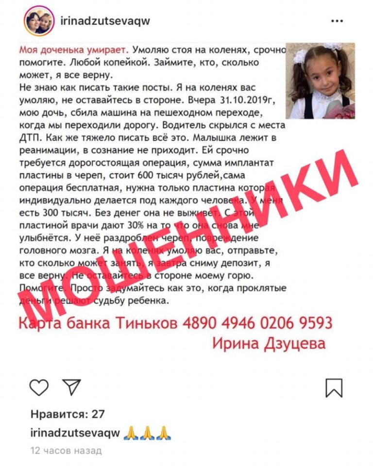 — Если друг не взял трубку по какой-то причине, то не бойтесь спросить в соцсети подробности: как звали маму\папу? Где именно это случилось? Какая болезнь\травмы? Согласна, что все может оказаться правдой и деньги действительно нужны в срочном порядке.
