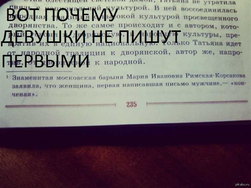 Этот вопрос задаётся, скорее всего, почему не пишут первыми после знакомства в интернете, взаимного свайпа в тиндере и т.д. Причина а-ля “в обществе так не принято” не является ведущей. Данная причина вообще где-то в конце мотива. На практике, даже если девушка ультрапатриархальных взглядов – напишет! Вбить пару символов ничего не стоит.
